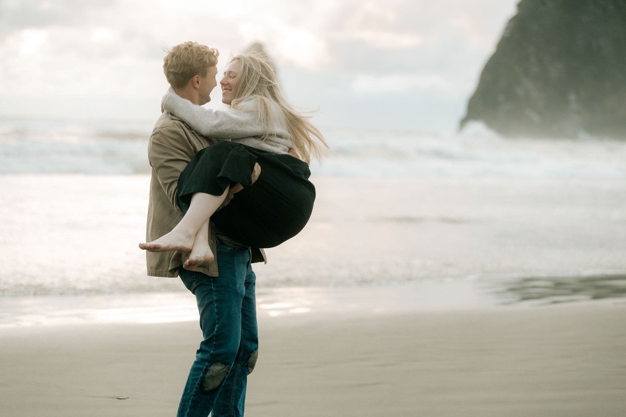 Cannon Beach is one of Oregon’s most iconic and dreamy spots for engagement photos. The dramatic coastal cliffs, misty skies, and soft golden hour light make the perfect backdrop for couples who love the outdoors, the ocean, and the in-between moments. I’ll guide you through everything — from choosing the best time of day to location tips near Ecola State Park, Hug Point, or tucked-away forest trails.