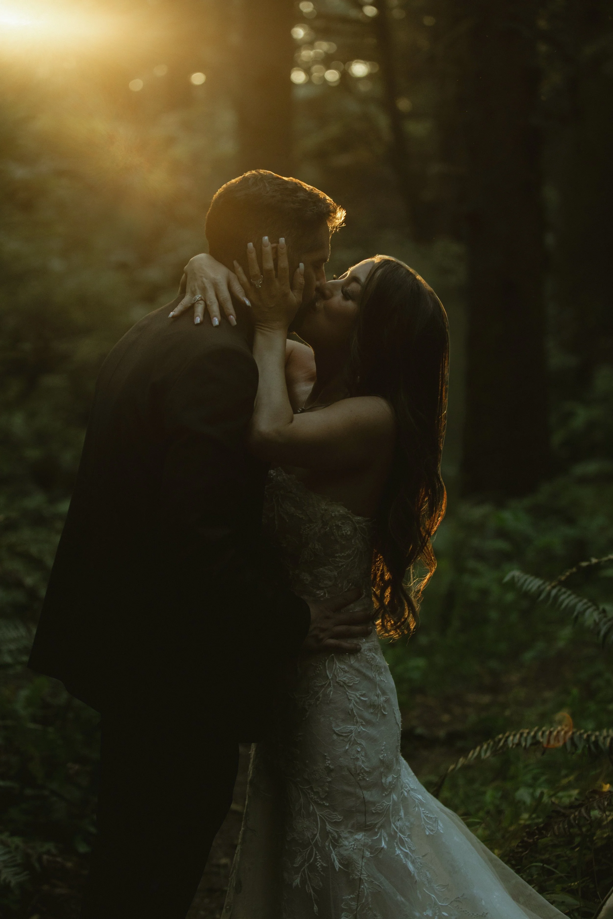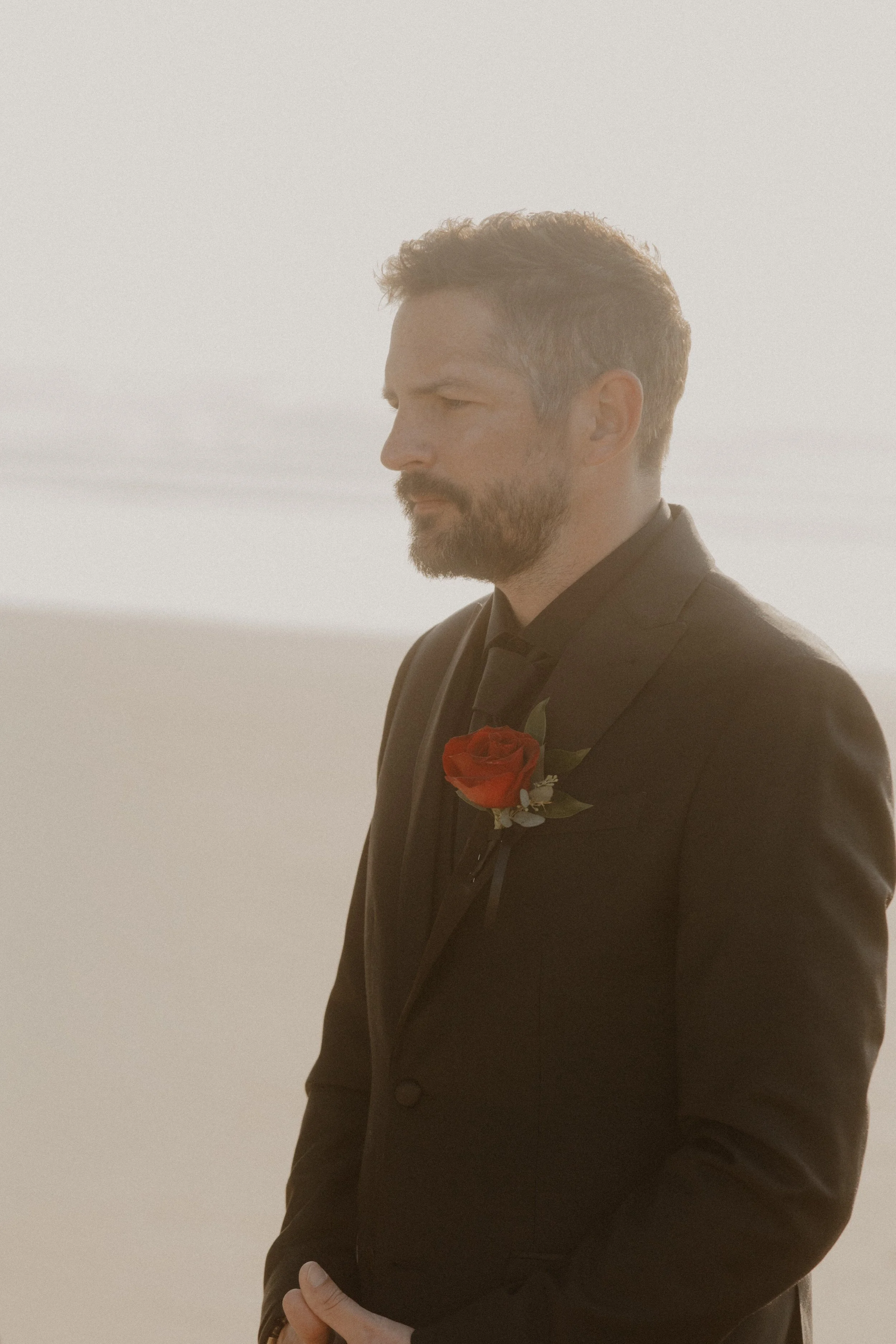 The couple wanted their day to feel authentic and unhurried — a reflection of who they are together. They exchanged vows barefoot in the sand, surrounded by the serenity of the Pacific Northwest coast.