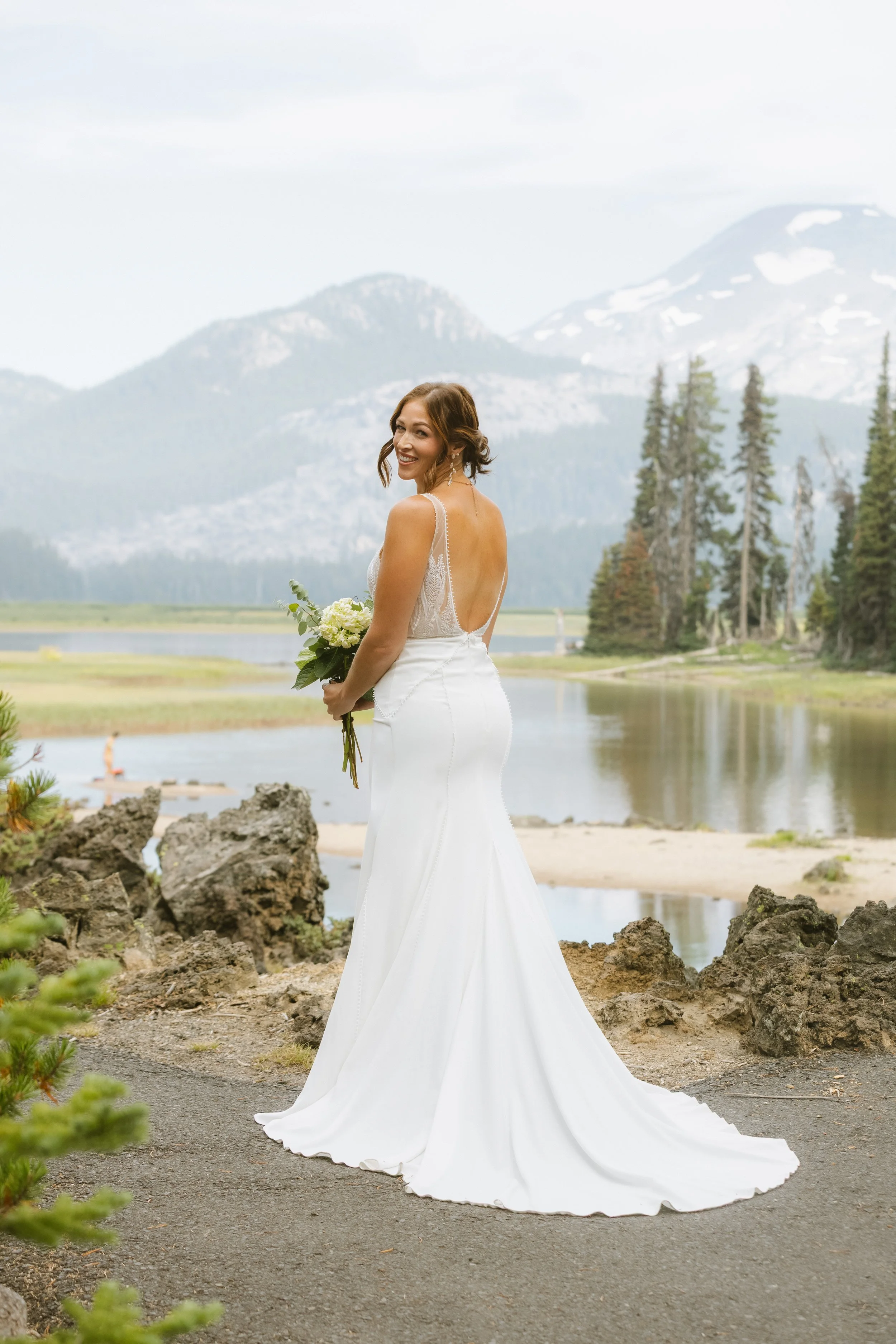 Nestled just off the Cascade Lakes Highway, Sparks Lake is a stunning alpine lake with unbeatable views of South Sister and Broken Top Mountain. It’s a location that feels remote and adventurous while still being accessible for couples and their guests.