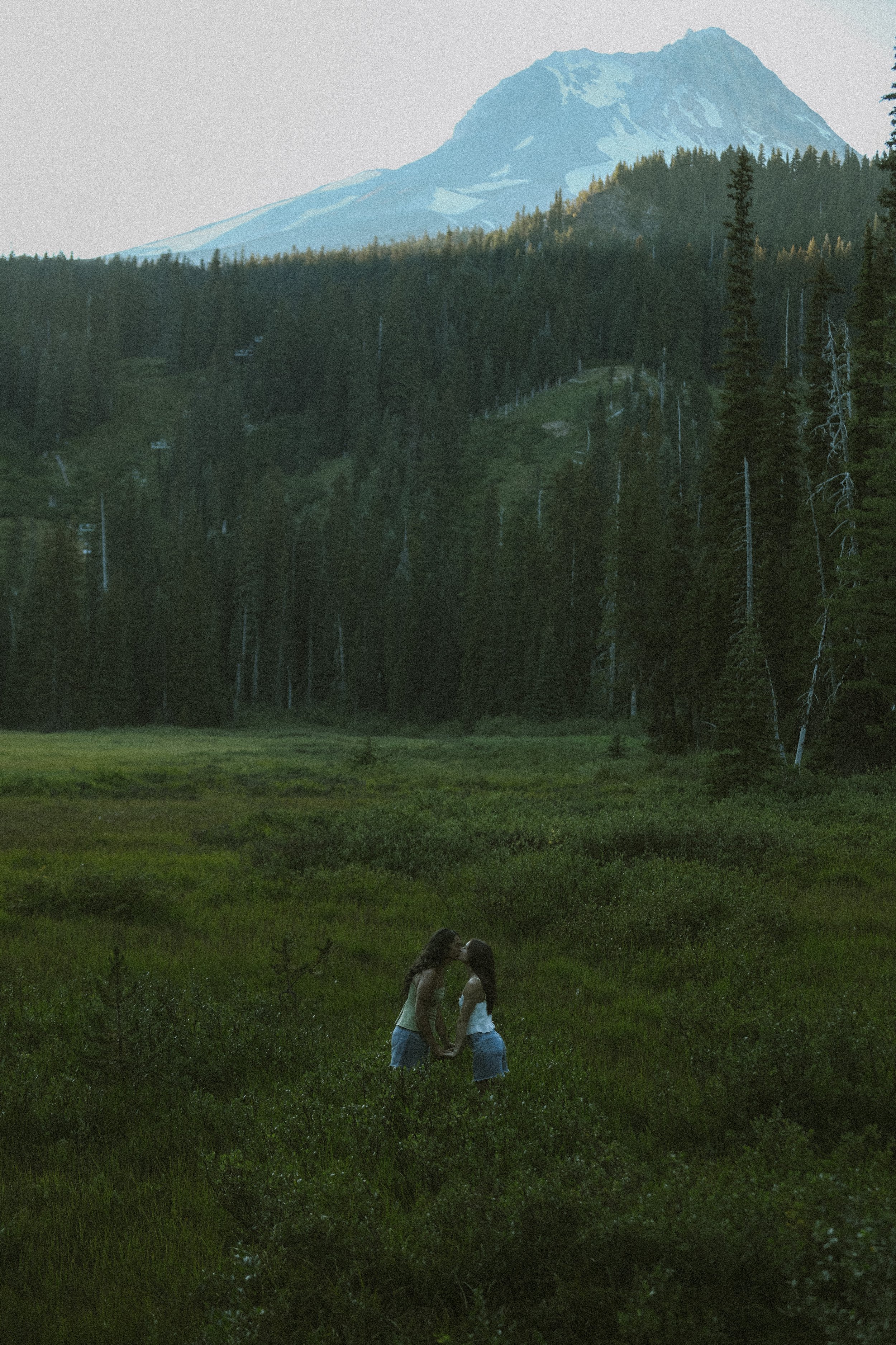 One of the best parts of a July shoot in Oregon is the light. Summer evenings stretch on forever, giving us time to explore multiple locations. After the waterfall, we caught golden hour in a nearby meadow with Mt. Hood standing tall in the background. The mix of cascading water, wildflower fields, and mountain views gave the couple a gallery that truly felt like Oregon in its prime.